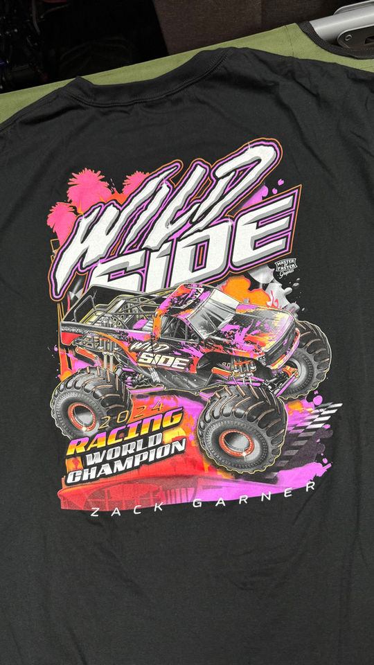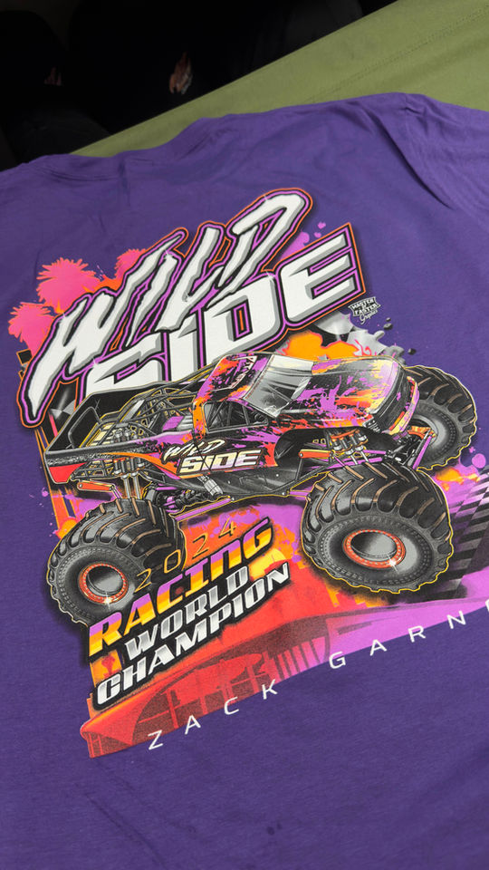 Represent your favorite superstar in style with the ALL NEW Wild Side T-Shirts. Featuring the body that won a World Racing Championship in 2024 over a beautiful LA themed background, these shirts will make a perfect addition to your wardrobe!